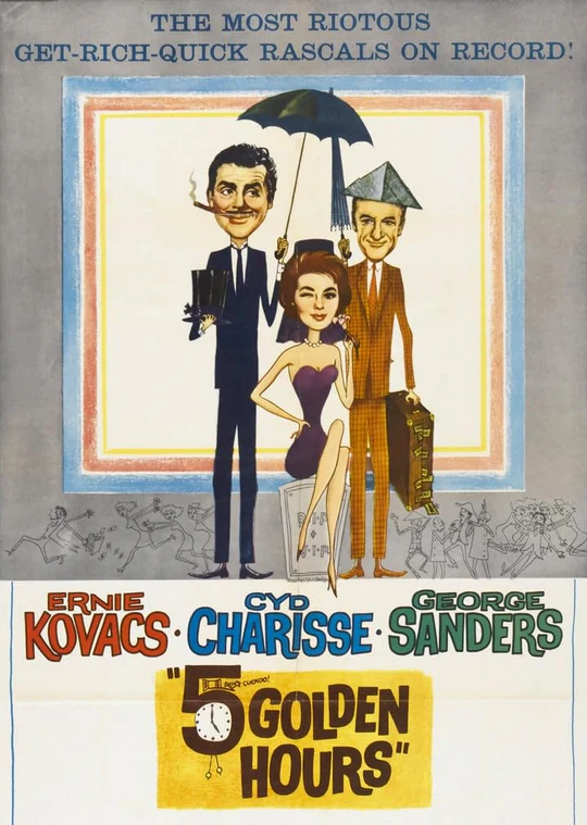 Starring Ernie Kovacs and Cyd Charisse, Five Golden Hours is a clever blend of comedy and mystery set in the canals of Venice. Kovacs plays a charming drifter who stumbles upon a murder and unexpectedly becomes the prime suspect. With the police closing in and danger at every turn, he must use his wits and luck to clear his name.