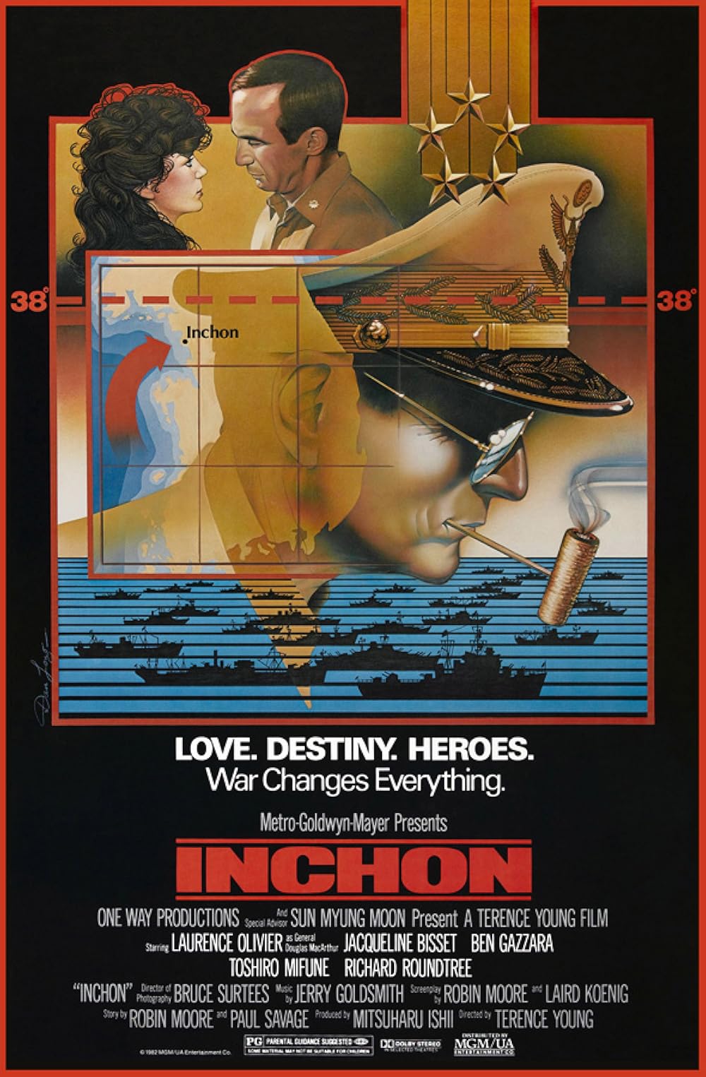 Inchon (1981) is an epic war drama depicting the famous Battle of Inchon during the Korean War. Starring Laurence Olivier as General Douglas MacArthur and Jacqueline Bisset, the film chronicles the daring amphibious invasion that turned the tide of the conflict.